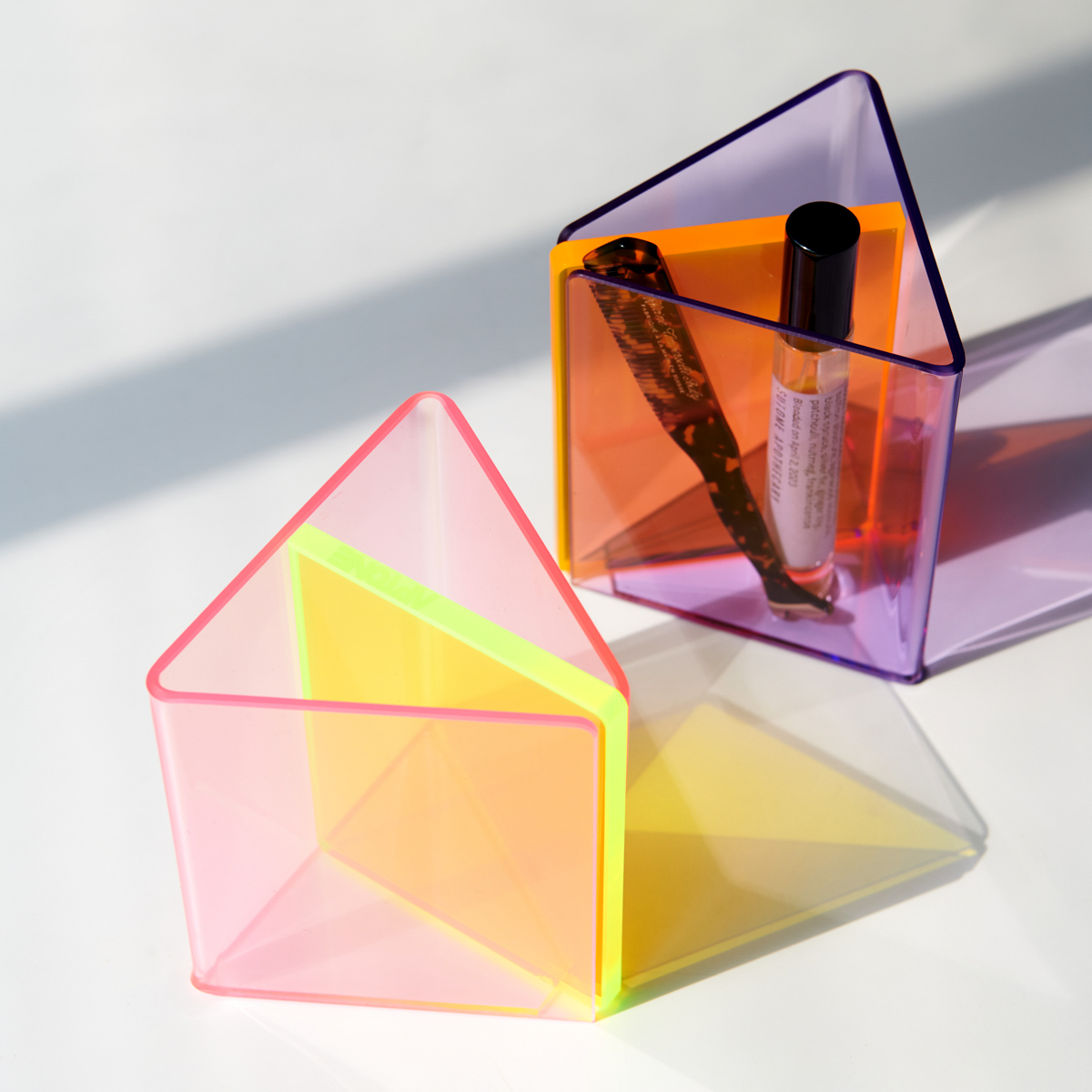 Aroo Series는 색과 빛을 재구성한 아크릴 데스크 오브제입니다.